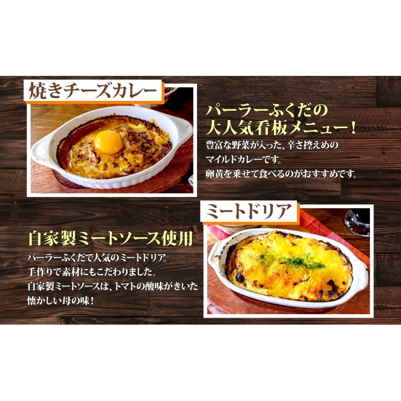 焼きチーズカレー、ドリア、パスタなど手作りメニューを提供しています。