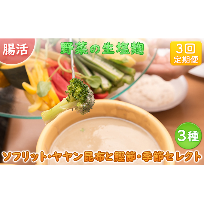 【塩麹3種×1ヶ月おき計3回お届け 定期便】サニーサイドアップカフェ 野菜の生塩麹 3種(ソフリット+ヤヤン昆布と鰹節+季節セレクト) 調味料 発酵食品 万能調味料 抗酸化作用 整腸作用