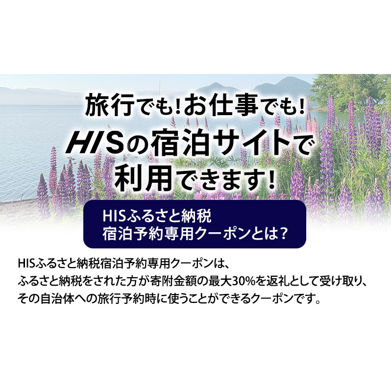 HISふるさと納税宿泊予約専用クーポンは、自治体にふるさと納税をされた方が寄附金額の最大30%を返礼として受け取り、その自治体への旅行予約時に使うことができるクーポンです。