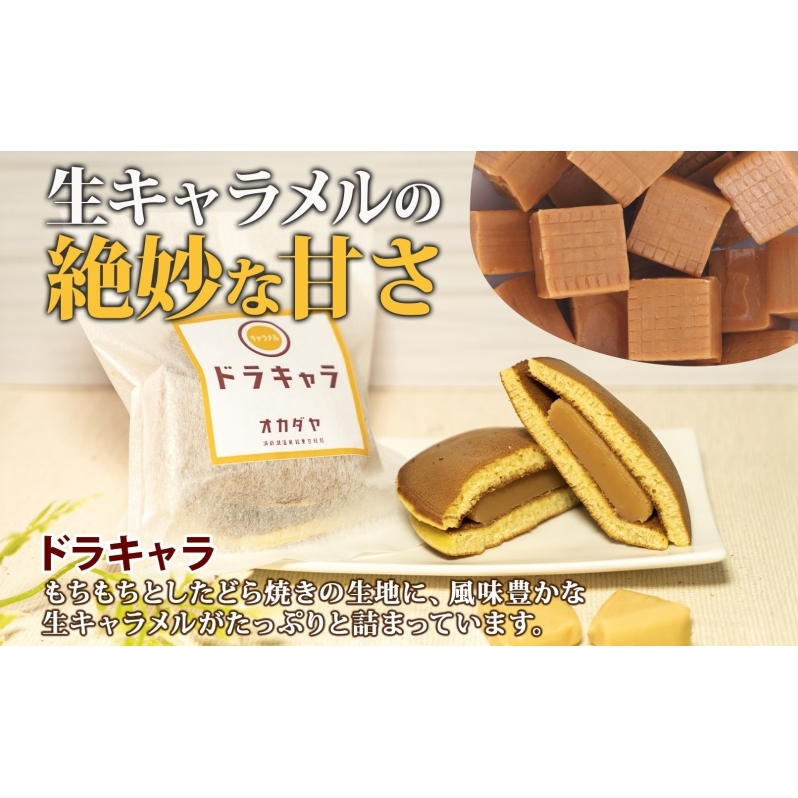 生キャラメル餡をどら焼きの生地で挟んだ、和洋折衷の和菓子です。