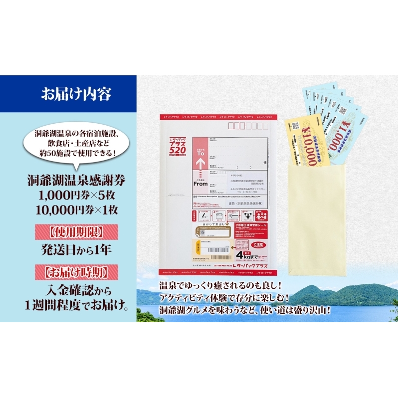 ・洞爺湖温泉感謝券[10,000円券×1枚、1,000円券×5枚]
