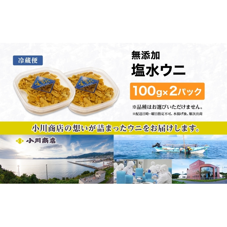 【先行予約】北海道 無添加塩水 ウニ 100g 2パック 11月上旬~12月上旬頃まで順次出荷 バフン ムラサキ うに 雲丹 海鮮 小川商店