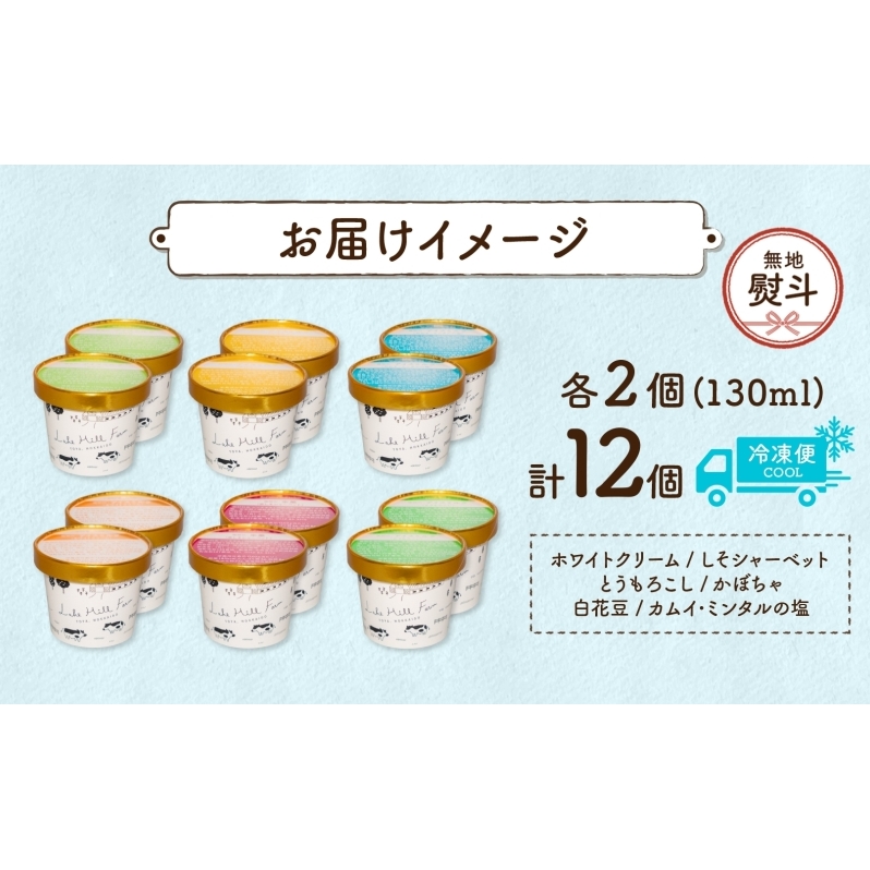 無地熨斗 北海道 まきばのジェラート 6種 各2個 計12個 セット ジェラート ミルク 赤しそ カムイミンタルの塩 とうもろこし かぼちゃ 白花豆 アイス 牛乳 お取り寄せ グルメ ギフト 送料無料 熨斗 のし 名入れ不可