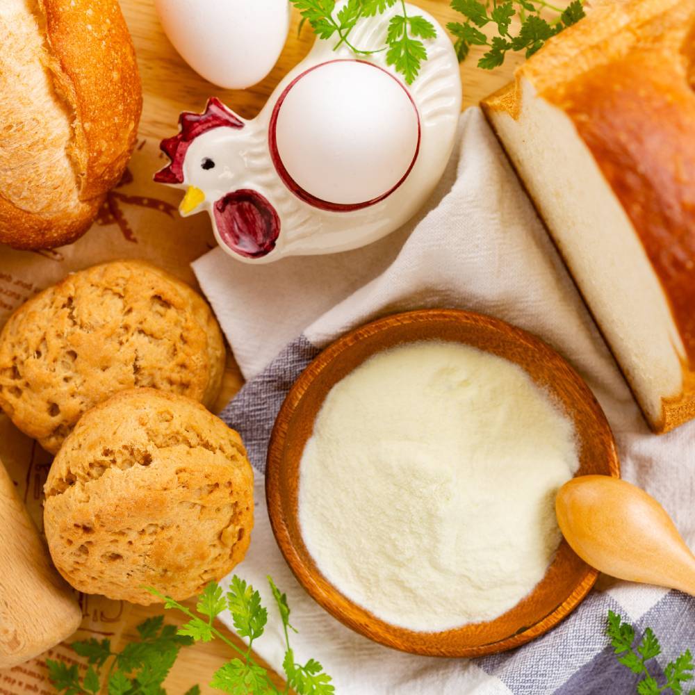 脱脂粉乳(スキムミルク)とほぼ同等に製菓、製パン、アイスクリーム等の材料としてご利用いただけます。