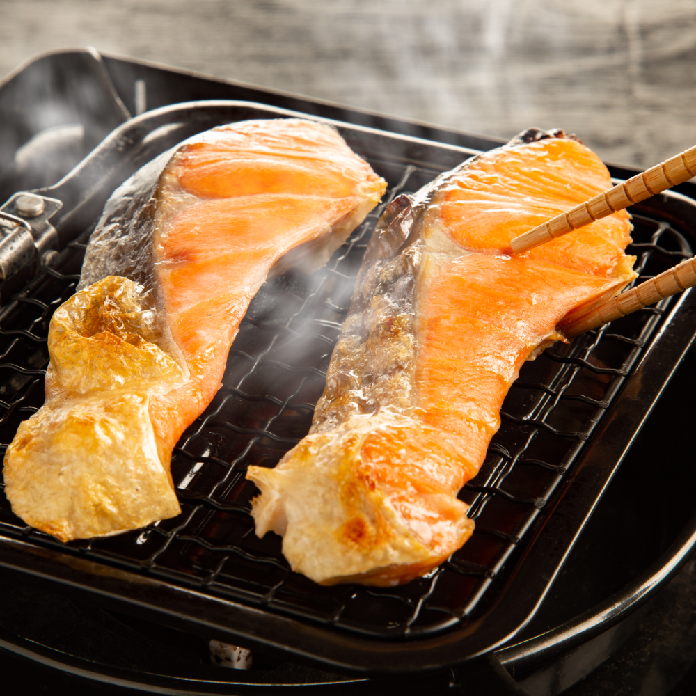 あつあつの白飯に焼いてほぐした紅鮭と、その上にいくら醤油漬を掛けた親子丼で食べるのがオススメです!