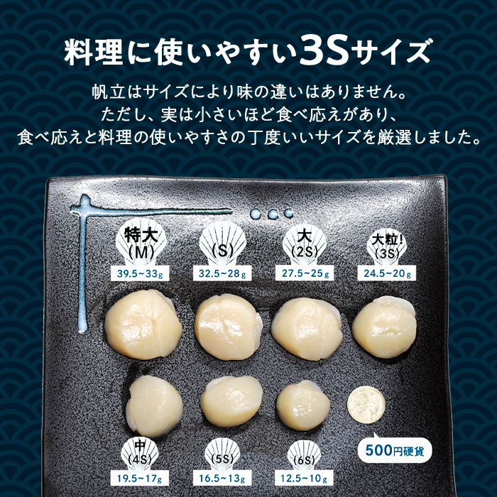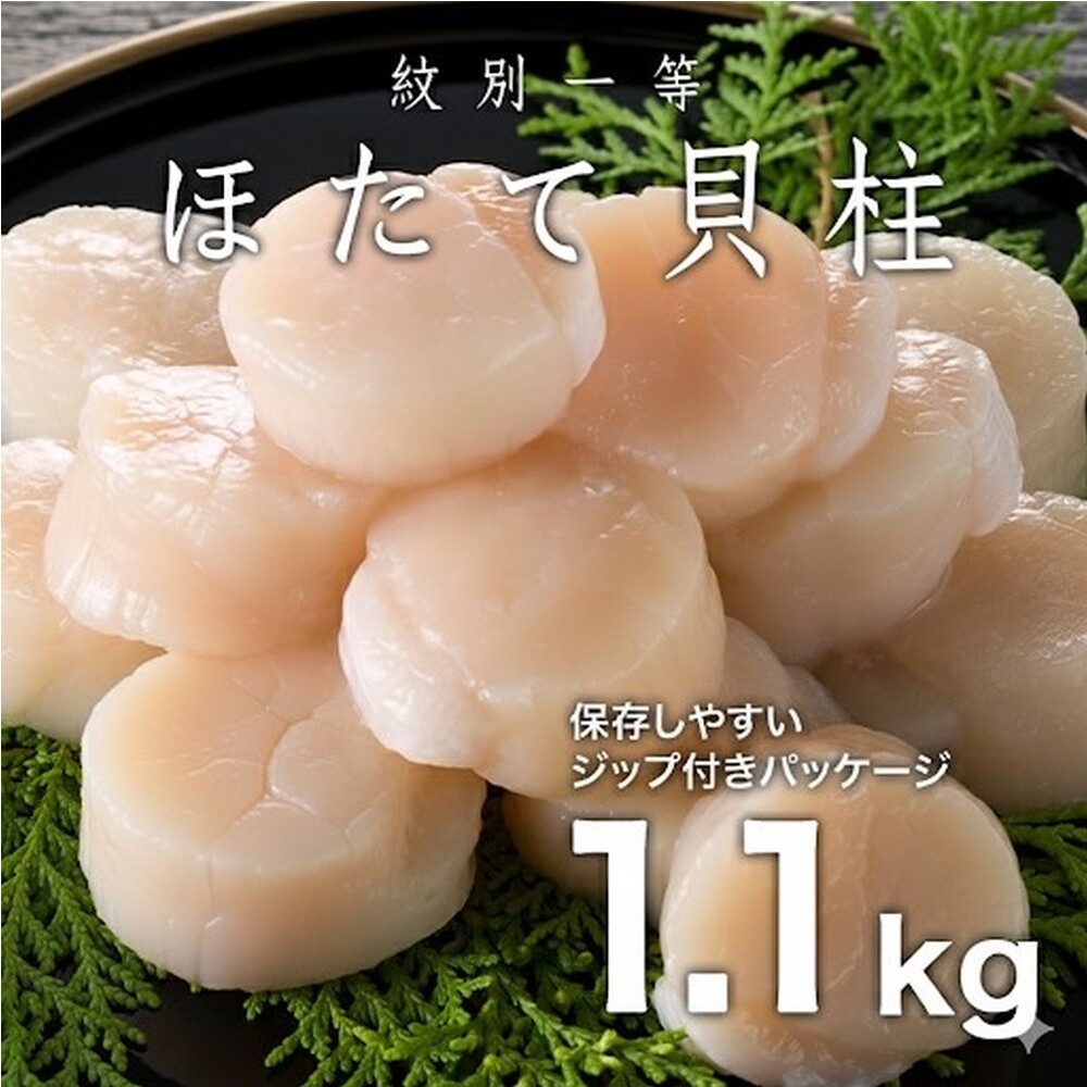 30-119 紋別一等~冷凍帆立貝柱1.1kg×1パック