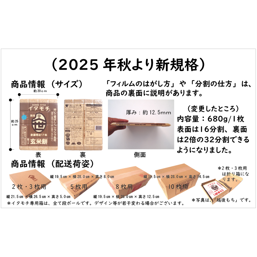 粗つき玄米餅(イタモチ)2枚セット 創業明治17年 渡英商店 謹製 加工食品 お米 食感 健康 お餅 お鍋 便利 香ばしさ 焼く お醤油 砂糖醤油 きな粉 のり 磯辺焼き 汁物 革新的 リピーター ツブツブ食感