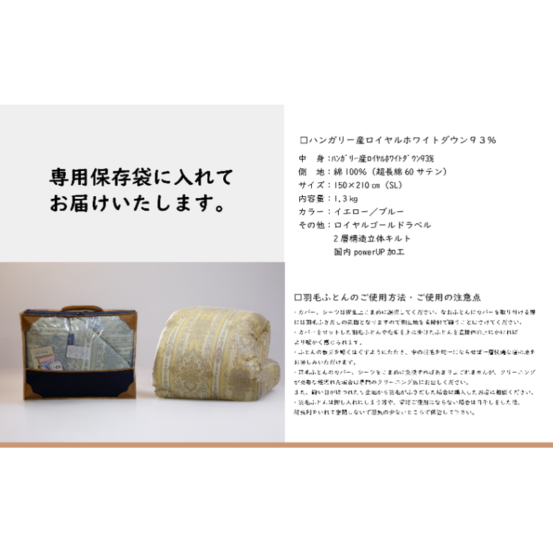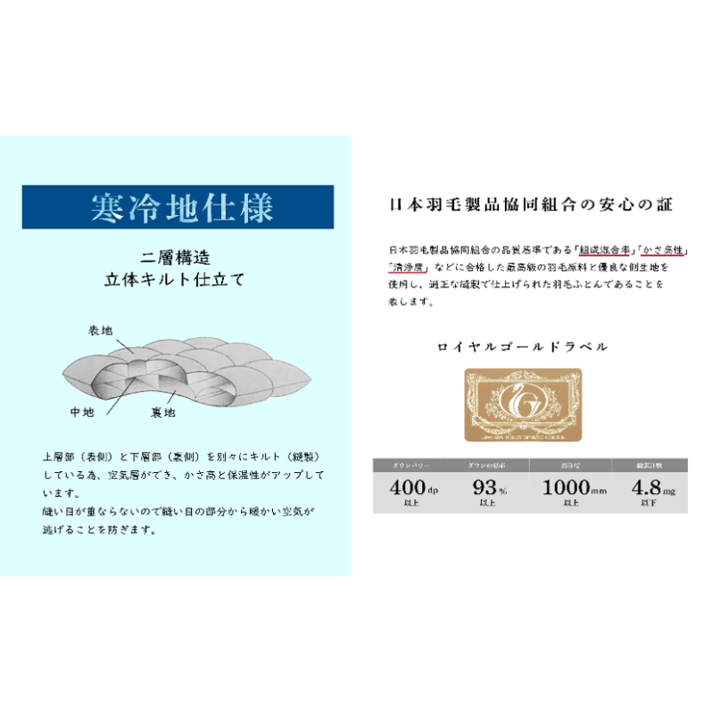 国産羽毛ふとん ハンガリー産ロイヤルホワイトダウン93%(ベネチア)