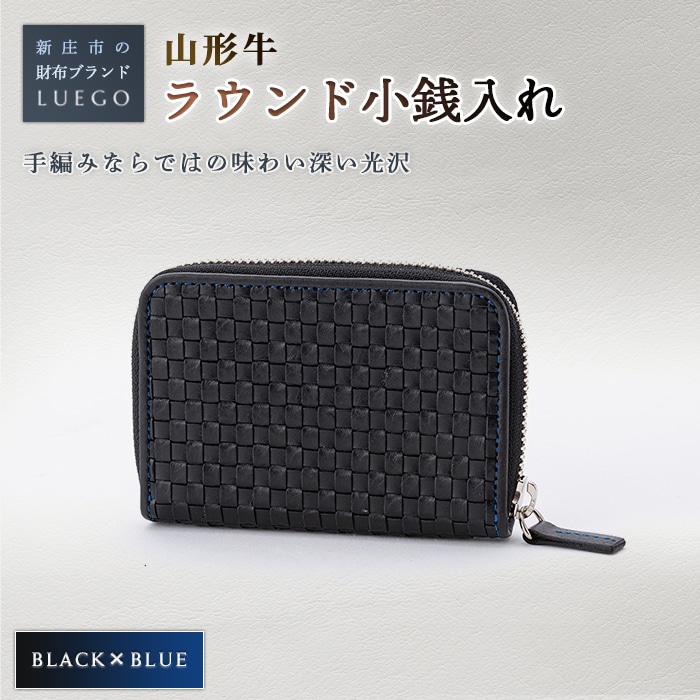 LUEGO 山形牛革 ラウンド小銭入れ ブラック×ブルー 入学祝い 卒業祝い 就職祝い 退職祝い 贈り物 贈答 ギフト 人気 誕生日 プレゼント 母の日 父の日 山形県 新庄市 F3S-1082