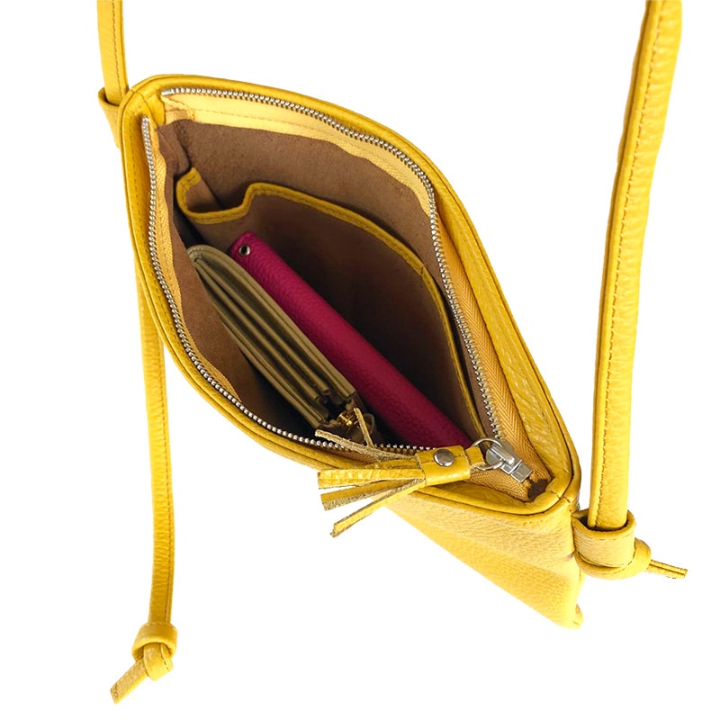 総革仕様のマチなしサコッシュ。やわらかな質感の牛革と内側には滑らかなピッグスキンを採用。