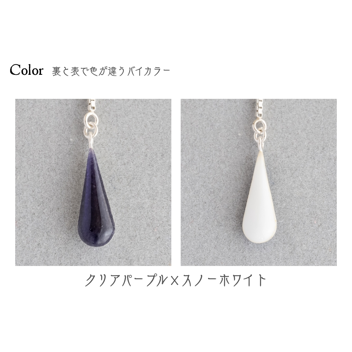 片面ずつ2色をお楽しみいただける、バイカラーのアクセサリーです。