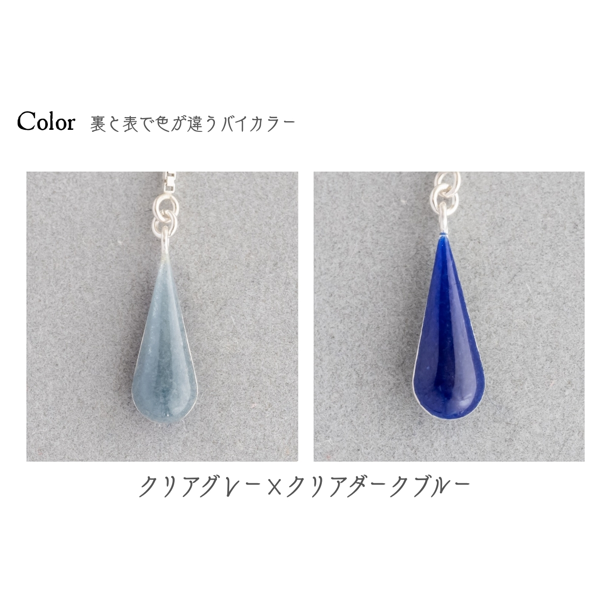 イヤリング しずく クリアグレー×アクアダークブルー 七宝