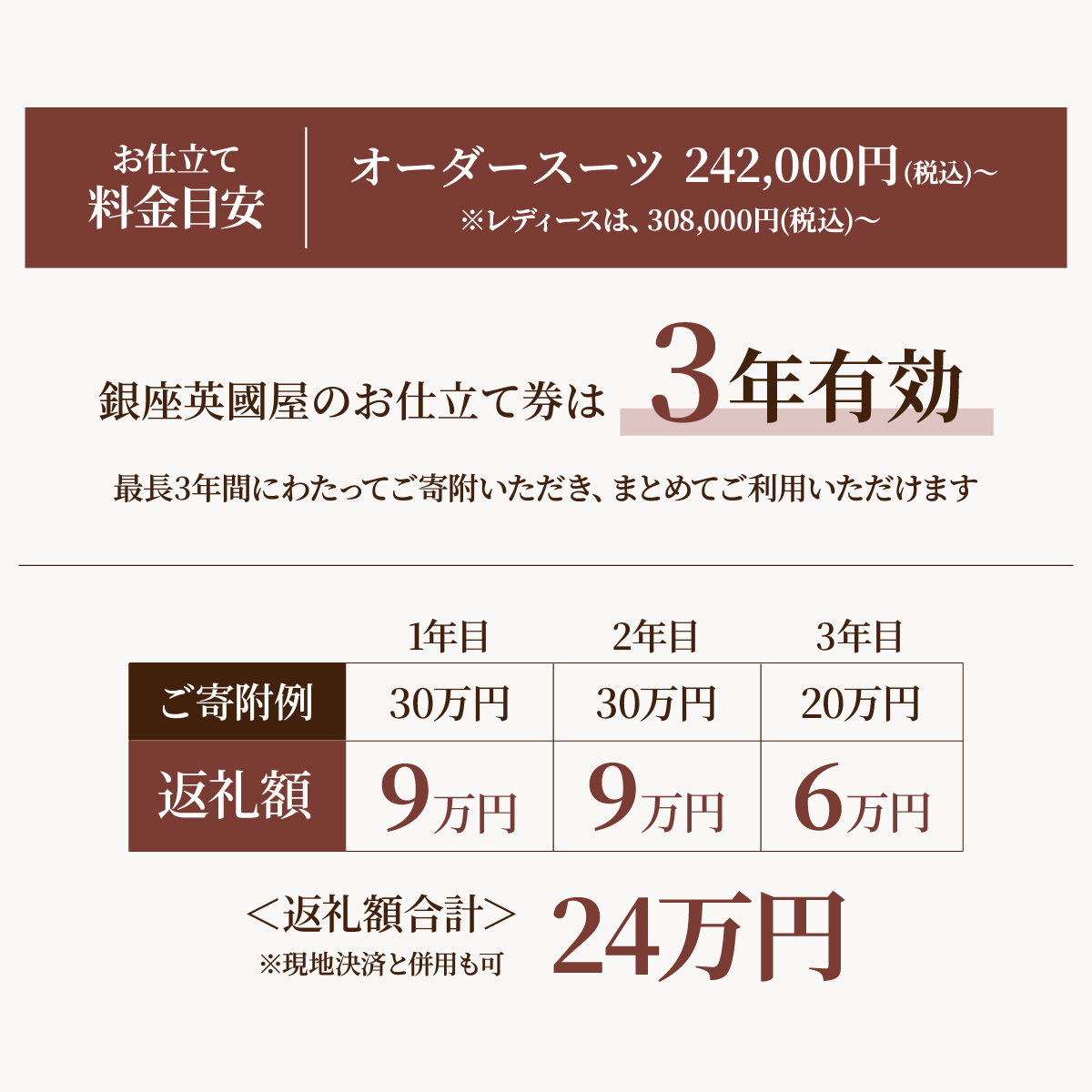 ●銀座英國屋のメンズ・レディースのオーダー商品のご購入時に充当できる補助券をお送りします。