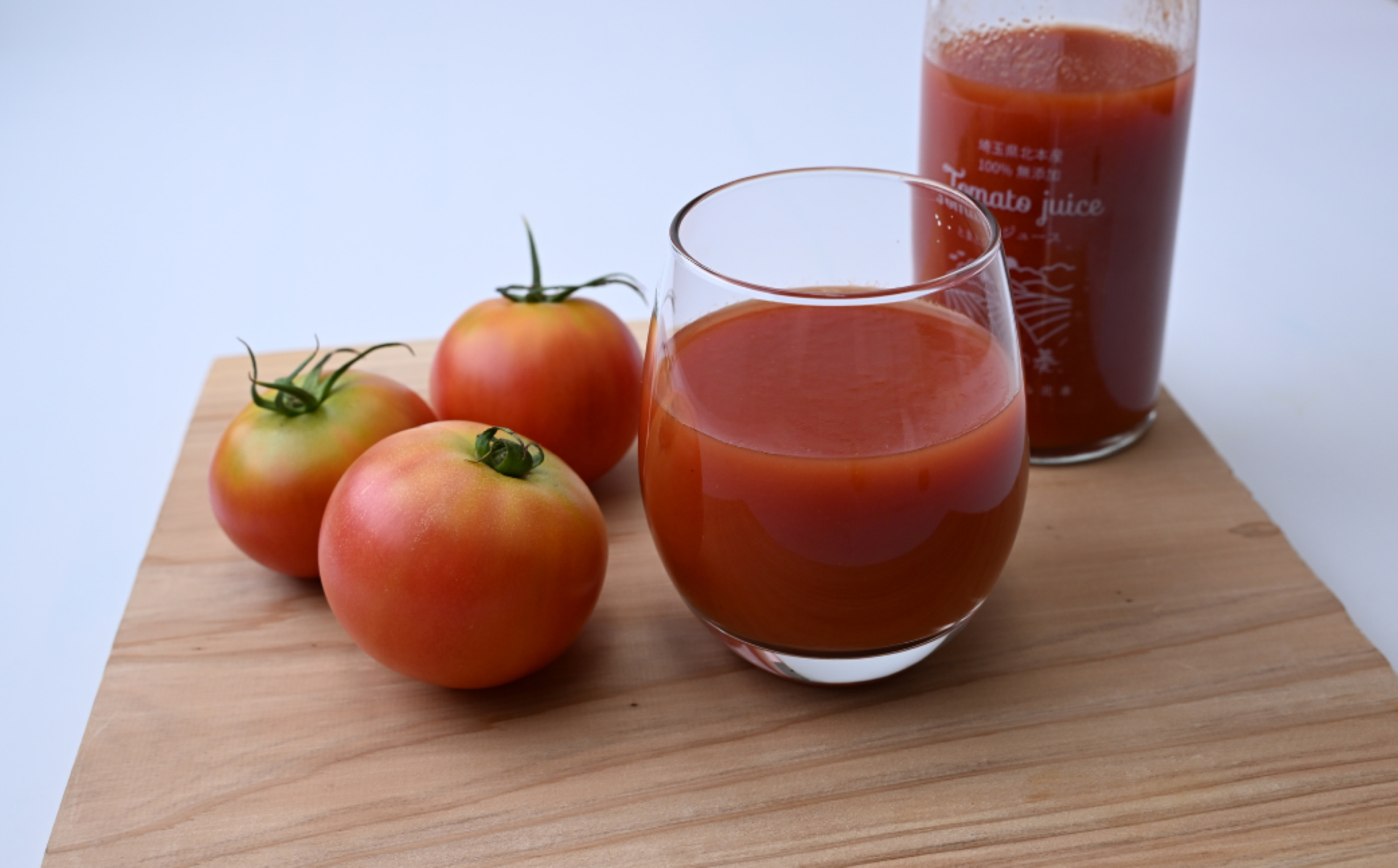 北本市で約400年以上続く内田農園がお届けする北本産トマトと人参を100%使用したジュースです。保存料・人工甘味料などは一切使わない無添加ジュースで、野菜本来の甘みを独自の方法で十分に引き出し、飲みやすい口当たりが自慢です。原材料はもちろん埼玉県の認証を受けた特別栽培農産物の当園のにんじんとトマトを使用。
