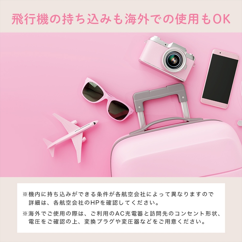 航空機内への持ち込みが可能なバッテリー容量ですので、手荷物カバンにいれて持ち込みできます。