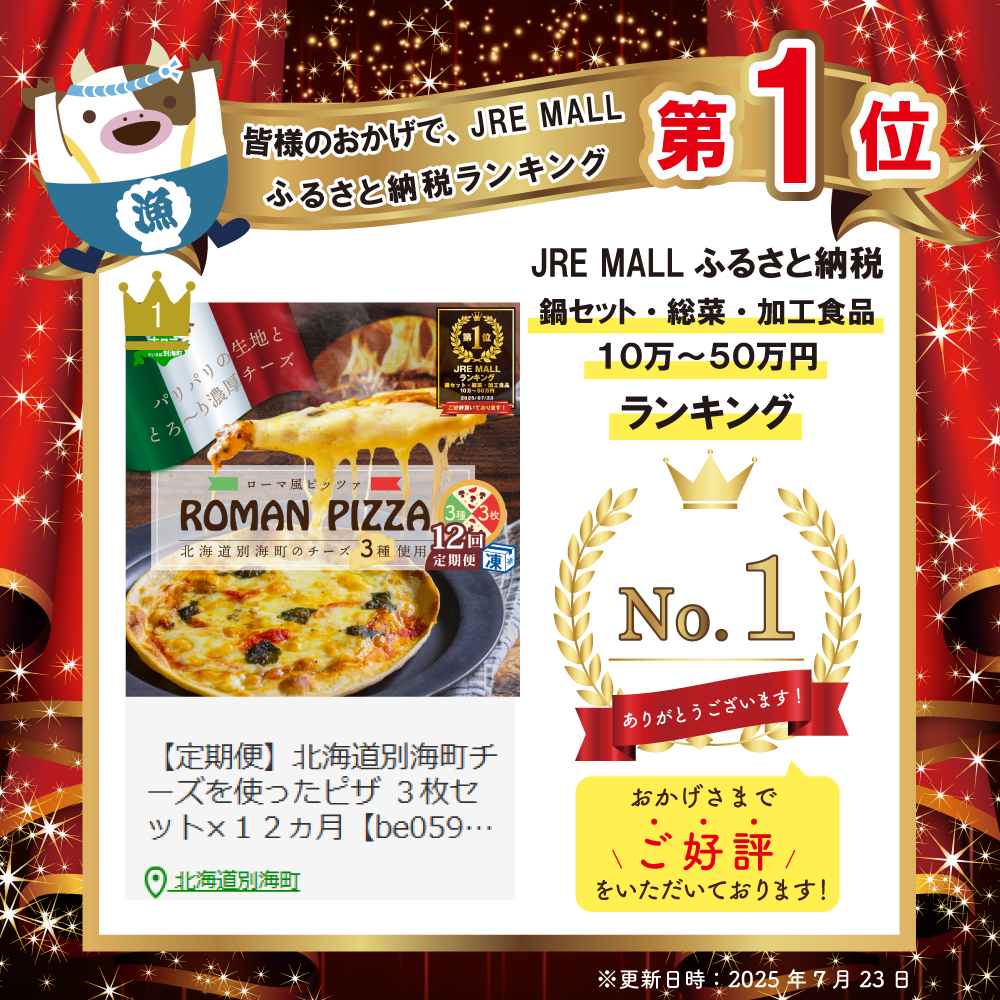 御礼!ランキング第1位獲得!【定期便】北海道別海町チーズを使ったピザ 3枚セット×12ヵ月【be059-0689-100-12】(北海道,別海町,チーズ,ちーず,チーズケーキ,スイーツ,ふるさと納税)