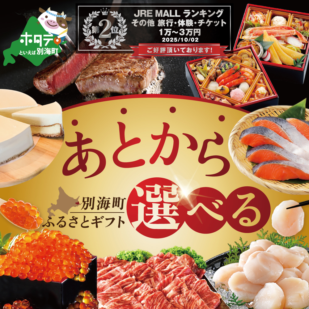 ■ あとからセレクト【ふるさとギフト】は、ふるさとギフト券にご寄附いただき、後日、交換サイトにて、北海道別海町自慢の特産品に交換することが可能です。
