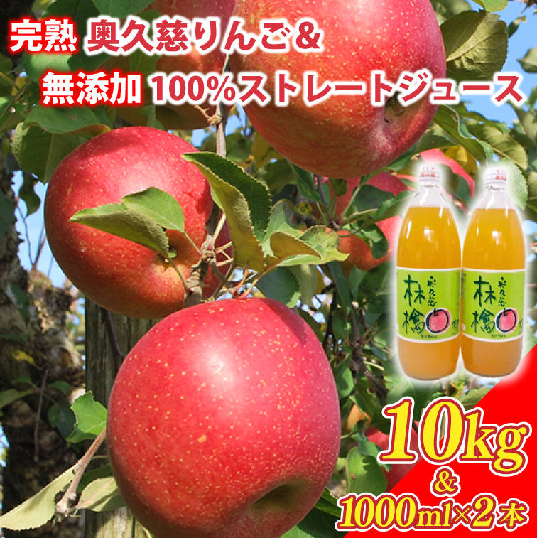 【数量限定・先行予約】【2025年11月上旬頃発送予定】奥久慈りんご園の樹上完熟 奥久慈りんご 10kg(30~40玉)&りんご無添加100%ストレートジュース 1000ml×2本(AI005-1)