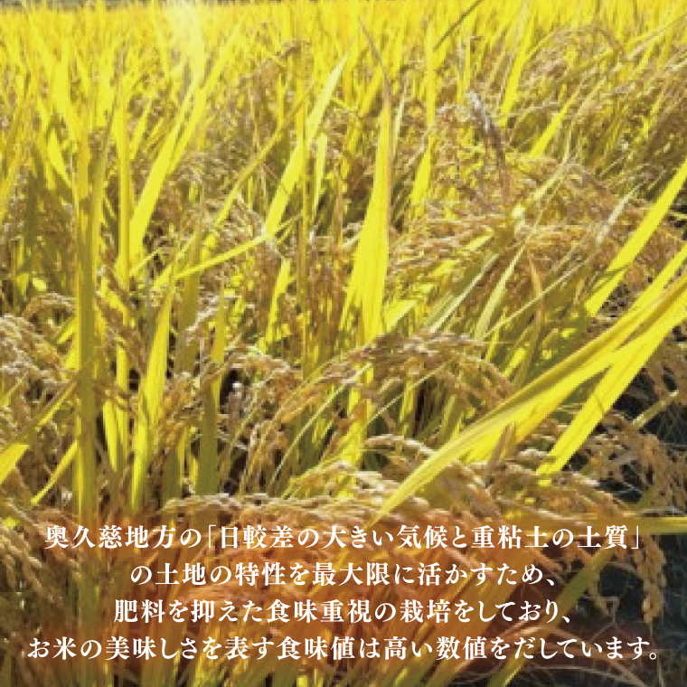 奥久慈地方のお米は、日較差の大きい気候と重粘土の土質により、甘みが強くモチモチとした食感になります。