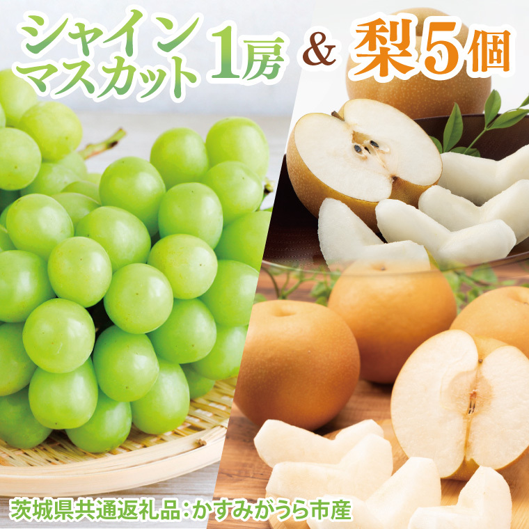 【先行予約】【2025年8月より順次発送】シャインマスカット1房と梨5個(茨城県共通返礼品:かすみがうら市産)|マスカット 種なし なし 幸水 豊水 新高 にっこり フルーツ 果物 くだもの セット 数量限定 茨城県 大子町(CD129)