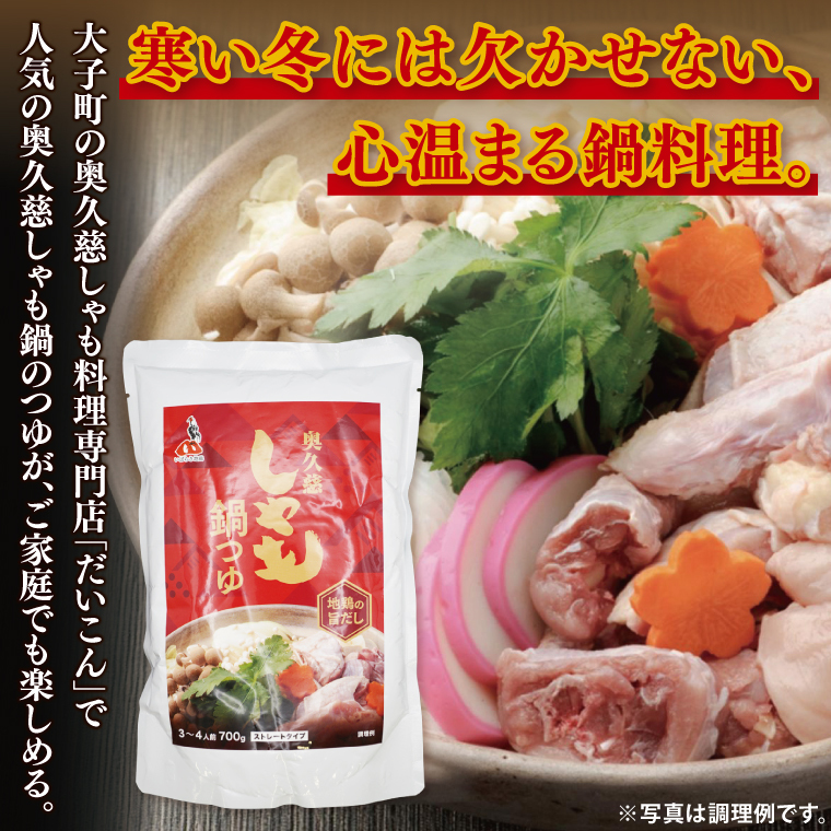 奥久慈しゃも鍋つゆ 700g×3個 ストレートタイプ(3~4人前)|茨城県 大子町 かつお節 鶏がら お鍋 簡単鍋 冬 鍋つゆ しゃも 鍋 だし(AR017)