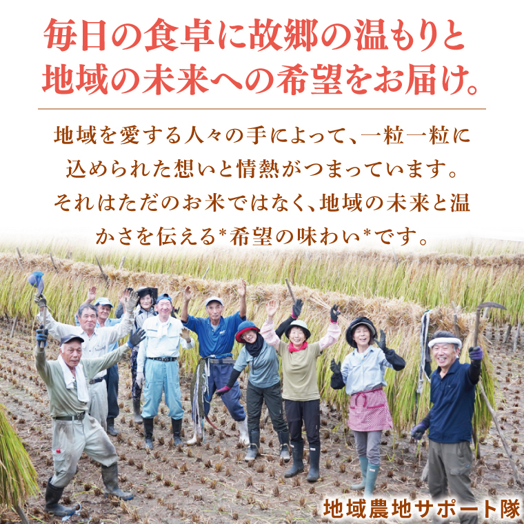 地域を愛する人々の手によって、一粒一粒に込められた想いと情熱がつまっています。それはただのお米ではなく、地域の未来と温かさを伝える*希望の味わい*です。