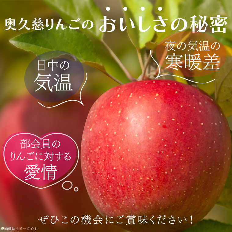 奥久慈りんごのおいしさの秘密は日中の気温と夜の気温の寒暖差と、部会員のりんごに対する愛情です。