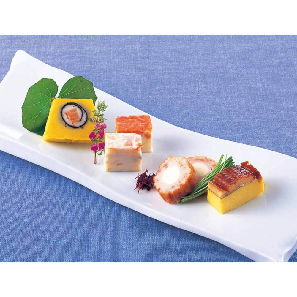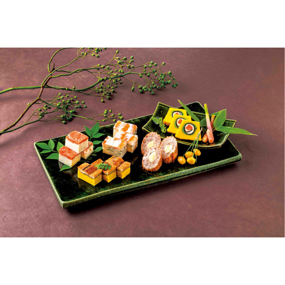 | 原材料名 | 【サーモンテリーヌ】原材料名:魚肉(グチ)、植物油脂、種物(紅鮭燻製、錦糸卵、焼海苔)、砂糖、卵白、ばれいしょでん粉、マヨネーズ、発酵調味料、食塩、マーガリン、調味料(アミノ酸等)、着色料(カロチン、クチナシ、ビタミンB2)、(原材料の一部に乳製品を含む) 【海老入】原材料名:(グチ(輸入))、エビ、油脂加工品(卵・乳成分・大豆を含む)、砂糖、みりん、卵白、半固体状ドレッシング、ばれいしょでん粉、食塩、エビエキス(小麦を含む)、三つ葉、シーズニングオイル/焼成Ca、調味料(アミノ酸等)、香辛料抽出物 【穴子入】原材料名:魚肉(グチ(輸入))、あなご蒲焼(小麦・大豆を含む)、油脂加工品(卵・乳成分を含む)、半固体状ドレッシング、砂糖、卵白、みりん、ばれいしょでん粉、食塩、香辛料/焼成Ca、調味料(アミノ酸等)、着色料(カロチン、カラメル、ベニコウジ)、増粘多糖類、リン酸塩(Na)、香辛料抽出物 【サラミチーズ】原材料名:魚肉(グチ(輸入))、ソフトサラミ、チーズフード(ナチュラルチーズ、植物油脂)、ばれいしょでん粉、砂糖、卵白、発酵調味料、食塩、植物油脂、香辛料/調味料(アミノ酸等)、安定剤(加工デンプン)、乳化剤、リン酸塩(Na)、コチニール色素、カゼインNa、発色剤(亜硝酸Na、硝酸K)、香辛料抽出物、くん液、(一部に卵・乳成分・大豆・豚肉を含む) 【鮭入】原材料名:魚肉(グチ(輸入))、塩鮭、油脂加工品(卵・乳成分・大豆を含む)、砂糖、プロセスチーズ、半固体状ドレッシング、みりん、卵白、ばれいしょでん粉、食塩、植物油脂、マーガリン/焼成Ca、調味料(アミノ酸等)、乳化剤、香辛料抽出物  |