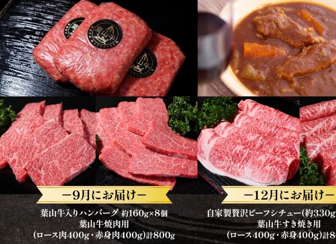 葉山牛すき焼き用(ロース400g・赤身400g)計800g、自家製贅沢ビーフシチュー(約330g)×3P
