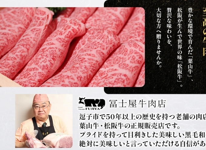 ・葉山牛、松阪牛ともにA4・A5等級の赤身肉を選び抜きました
