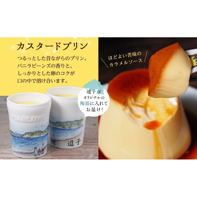 7. 逗子限定 陶器 カスタード プリン フレッシュ クリーム プリン 各2個 計4個 720 g セット 有限会社 マーロウ 手作り 焼き プリン 卵 牛乳 内祝い 詰め合わせ お祝い 冷蔵 贈答用 ギフト スイーツ プレゼント 送料無料 神奈川県 【 逗子市 】