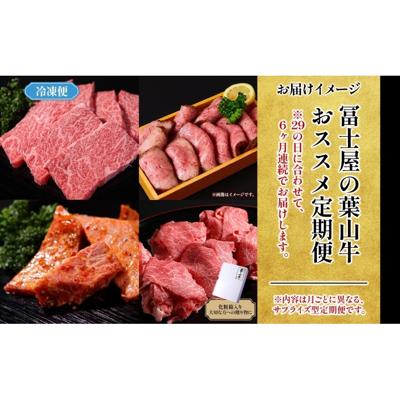 【29の日定期便】6ヶ月連続 葉山牛 定期便 カタログ ギフト カルビ切り落し ジューシー 黒毛和牛 霜降り 赤身 肉 焼く 家族 贈り物 受賞 うし 和牛 冷凍 良質 冷凍便 送料無料 冨士屋牛肉店 神奈川県 逗子市