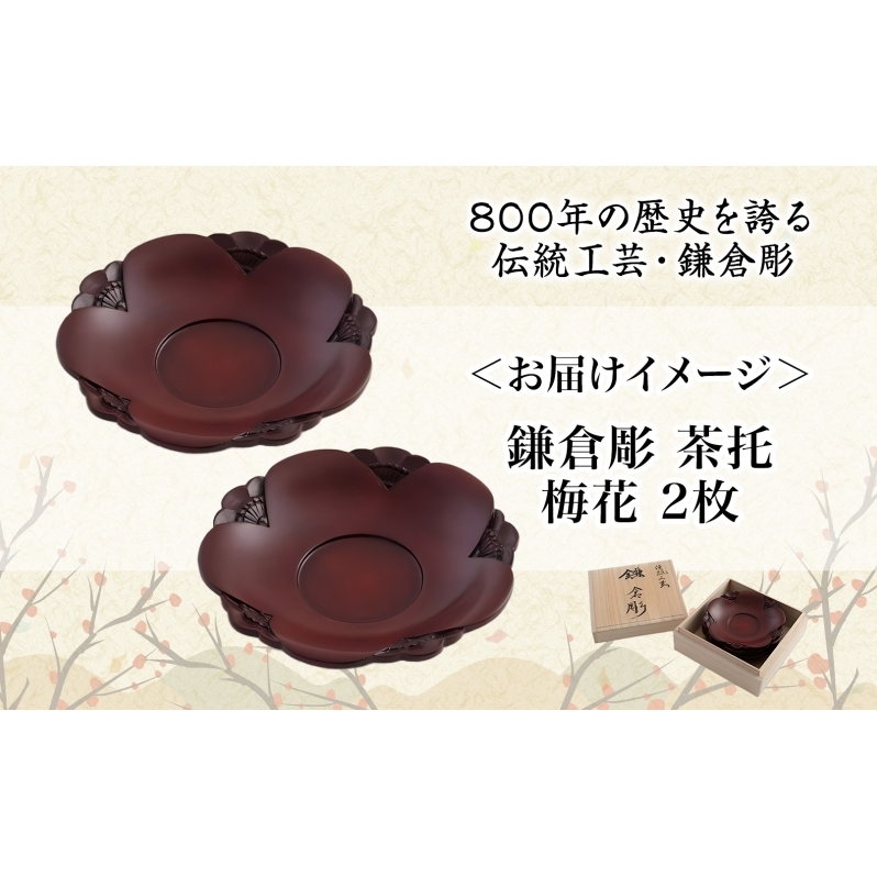 神奈川県逗子市より、800年の歴史を持つ伝統工芸「鎌倉彫」の茶托 梅の花2枚セットを桐箱入りでお届けします。