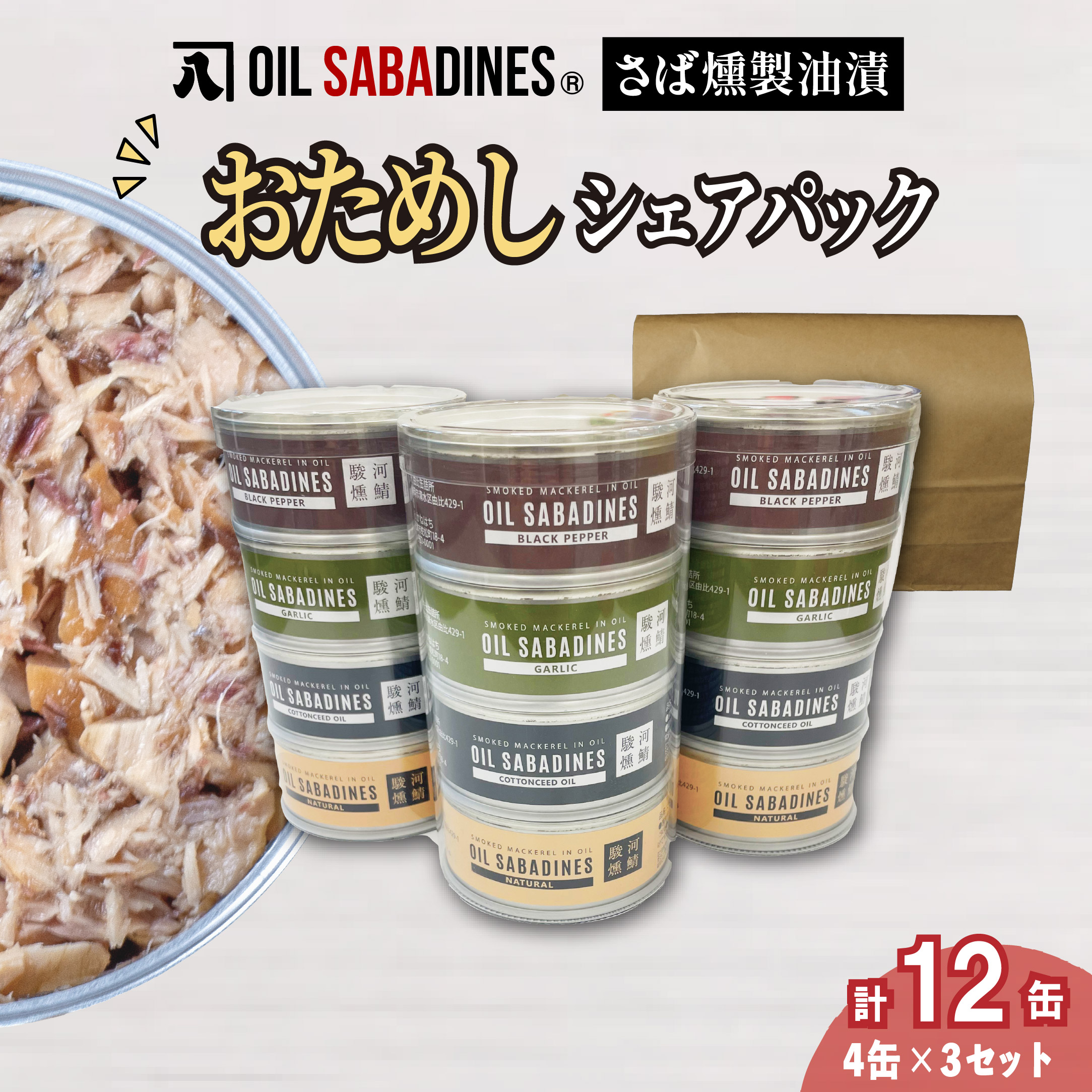 サバ缶 鯖缶 缶詰 さば 魚 オイルサバディン お試し シェア パック 4缶 × 3セット 鯖燻製油漬け サバ 鯖 かんづめ 缶詰め おつまみ 惣菜 長期保存 防災 災害 備蓄 沼津 静岡