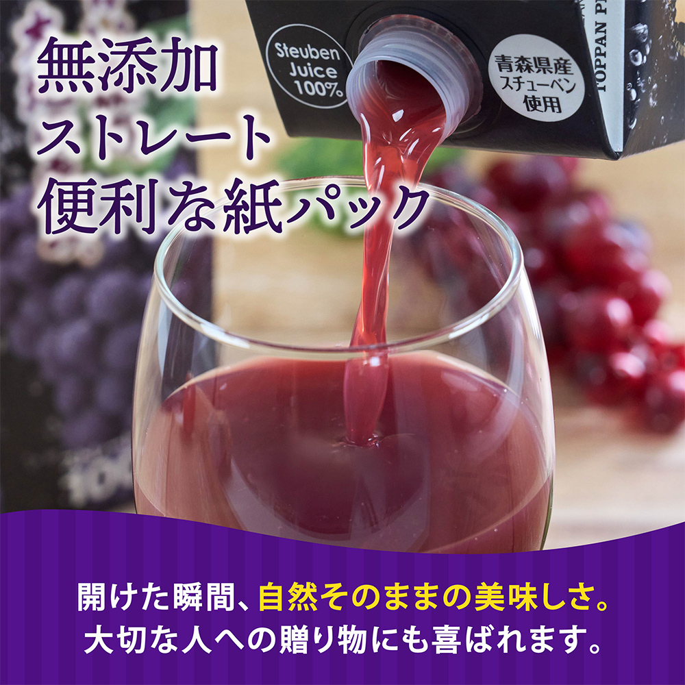ぶどうジュース 紙パック 1L×4本入り 化粧箱入り 無添加 ストレート果汁100% スチューベンジュース 青森県産