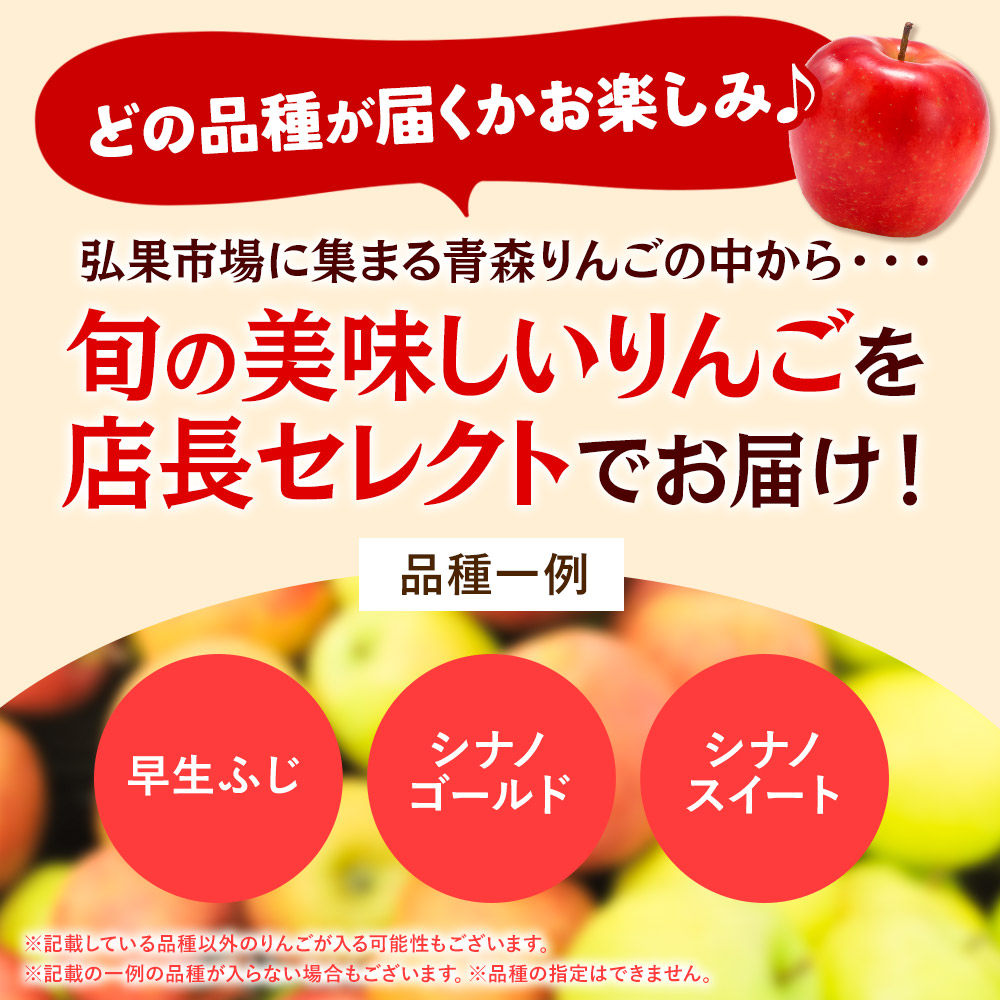 ※記載している品種以外のりんごが入る可能性もございます。 また、記載の一例の品種が入らない場合もございます。