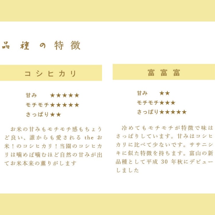 北アルプス剣岳源流早月川最上流の棚田で育てたお米です。山間部の寒暖差とこまめな水管理により食味値80以上。お米の食感はもちもちとしつつしゃっきりと炊くことが出来、ふっくらキラキラつややかなお米。冷めても一粒一粒立ちもちもちしています。収穫後にすぐに脱穀し、籾を地面に均等に広げて約2~3日かけ地熱と天日の熱を利用して干します。太陽光による遠赤効果で乾燥ムラのない高品質なお米に仕上げます。