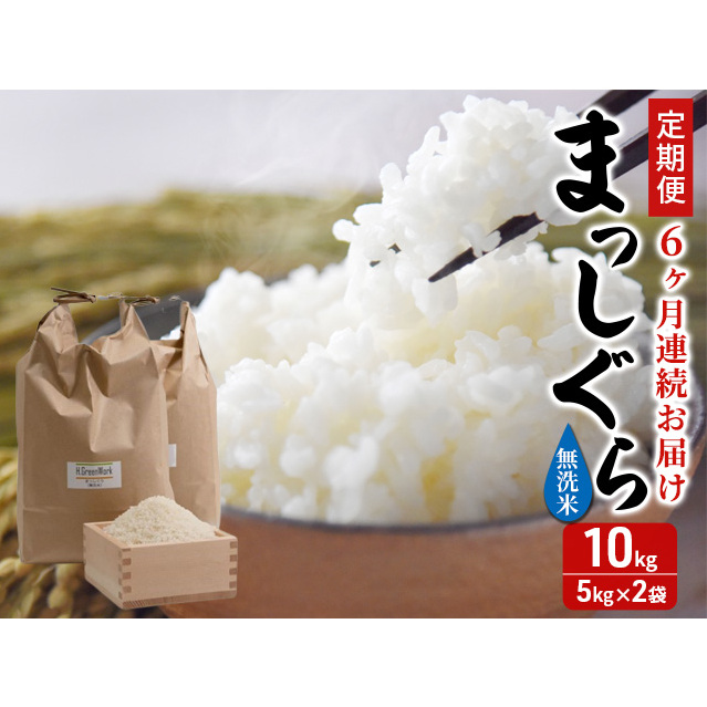 新米 定期便 6ヶ月 令和7年産 まっしぐら 無洗米 10kg (5kg×2袋) 米 白米 こめ お米 おこめ コメ ご飯 ごはん 令和7年 H.GREENWORK 6回 半年 お楽しみ 青森 青森県 鯵ヶ沢町