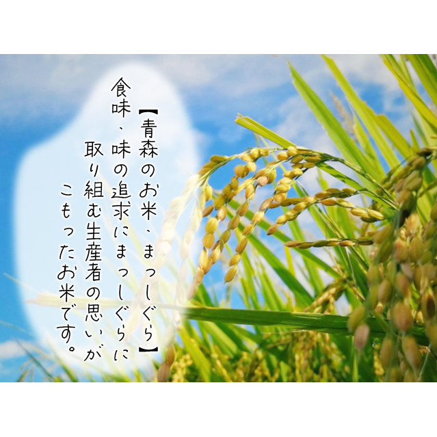 食味、品質の追及に「まっしぐら」に、そして生真面目に取り組んでいく気持ちを込めました。津軽富士岩木山の麓で栽培し、ミネラルたっぷりの伏流水で育まれています。一般販売に加え、業務用、輸出用と幅広く支持され愛されるおいしいお米です。低温精米でじっくり仕上げたお米は、炊上がりが白くつやがあり、適度な甘さで弾力感のある歯ごたえなので、毎日食べても飽きがきません。無洗米なので、炊く前にさっと軽くすすぐだけ。水に浸す時間は、普通のお米より長めがおススメです。(30分から1時間を目安に浸しましょう)
