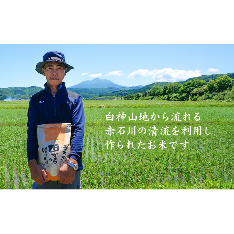 岩木山をバックに自然豊かな風土で、こだわりを持って大切に育てたお米です。