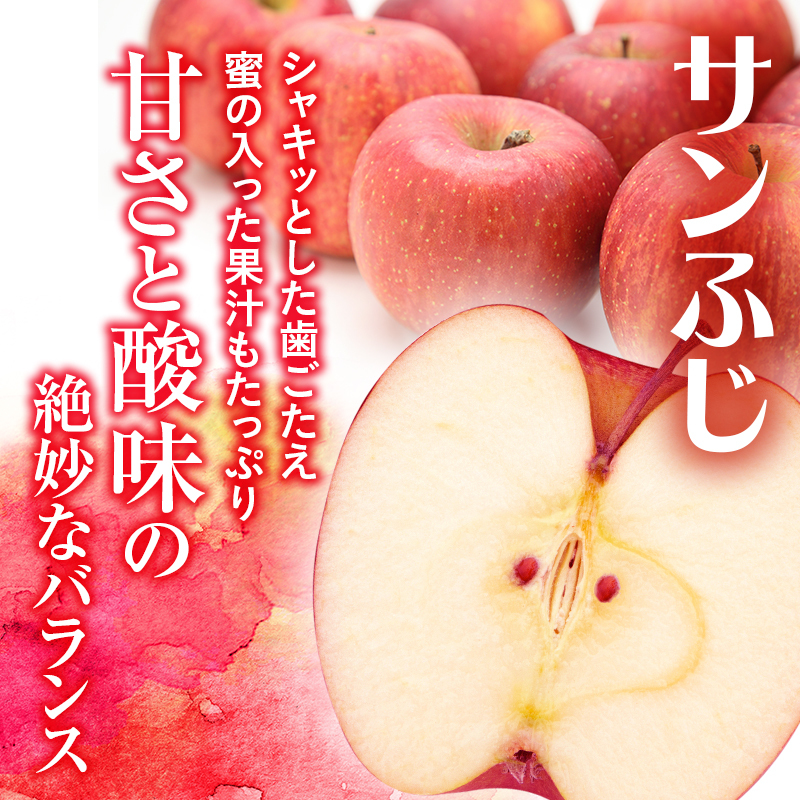 シャキッとした歯ごたえと、たっぷりの果汁、甘みと酸味のバランスが良いふじの味わいを約1ヶ月早くお楽しみいただけます。