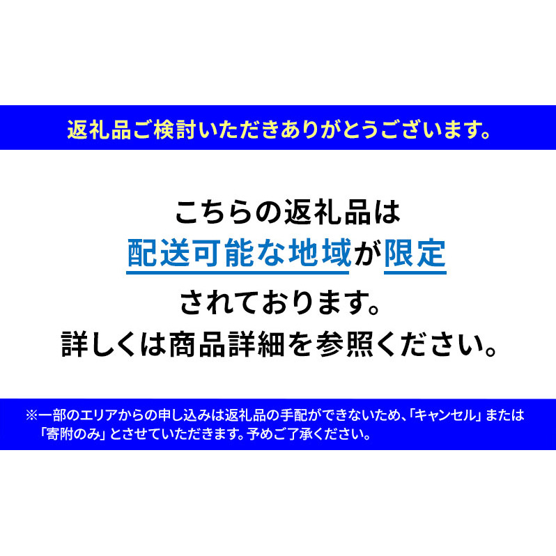 ※一部のエリアからの申し込みは返礼品の手配が出来ないため、「キャンセル」または「寄附のみ」とさせていただきます。予めご了承ください。