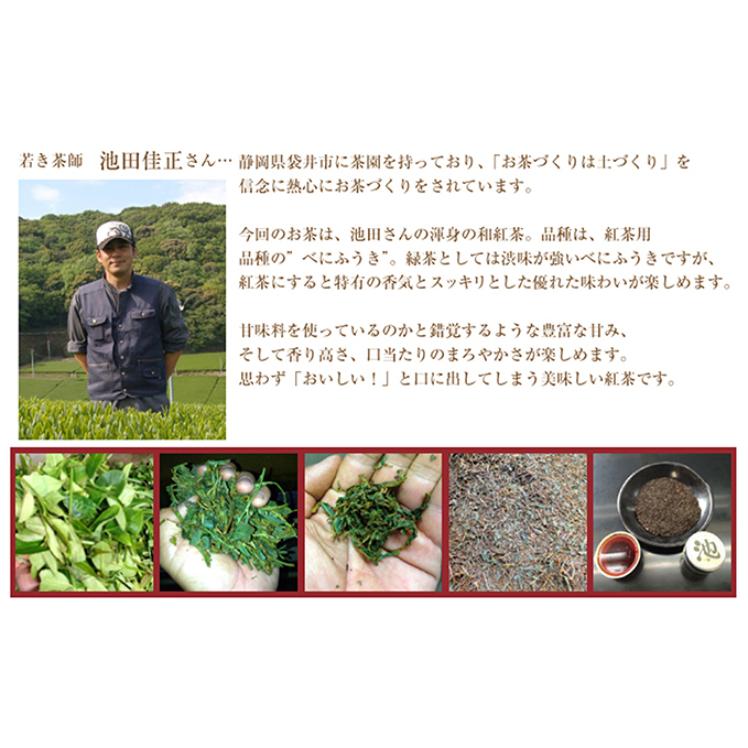 袋井市で土作りから真摯にお茶に向きあう若き茶農家池田佳正さんが作る国産の紅茶です。