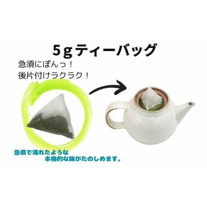 ティーバッグタイプですので茶殻の片付けが楽!つまんで「ポイッ」っと捨てるだけ!気軽に煎茶を楽しんでいただけます。