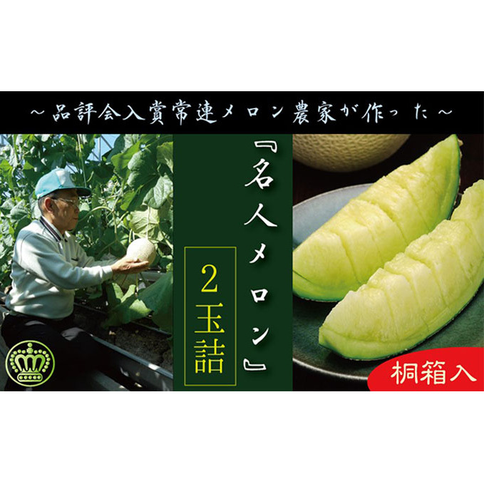 数量限定!『クラウンメロン 山等級 ”名人メロン” 2玉』 【桐箱入】 人気 厳選 ギフト 贈り物 デザート グルメ 果物 袋井市 果物類 メロン青肉 フルーツ