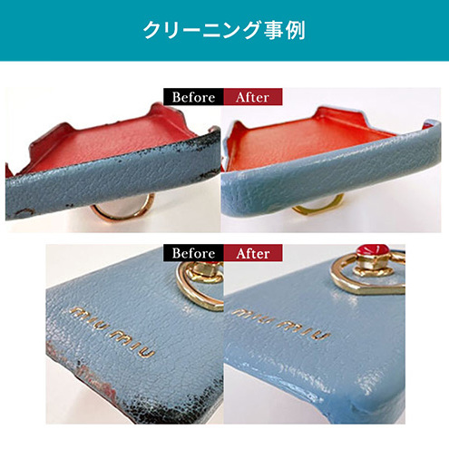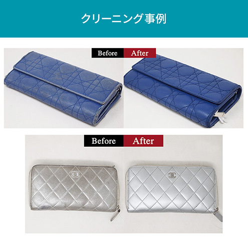 財布・小物のクリーニング、キズや擦れの修復、色補正、仕上までの全てがセットになったコースです。