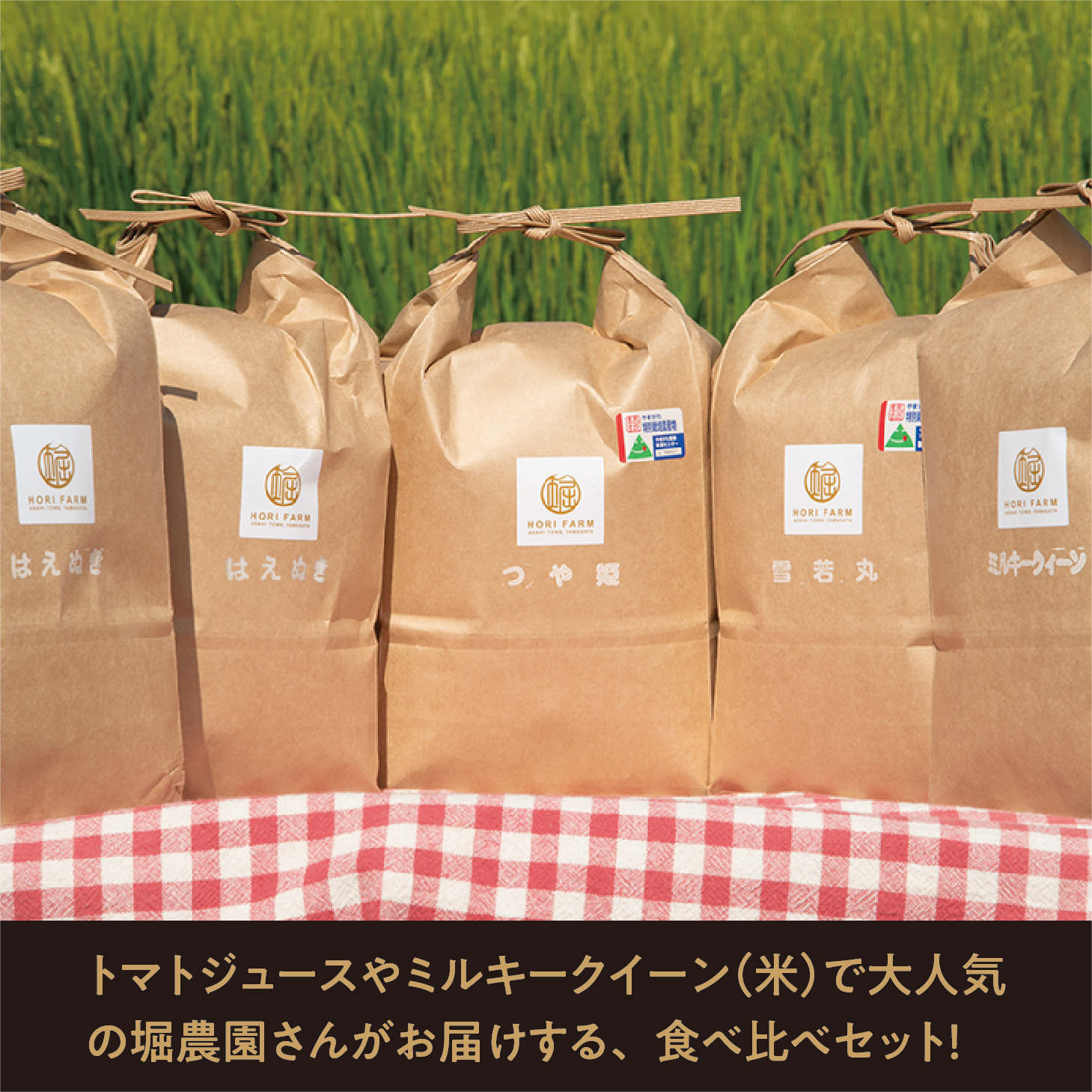 トマトジュースやミルキークイーン(米)で大人気の堀農園さんからお米の詰め合わせが登場。