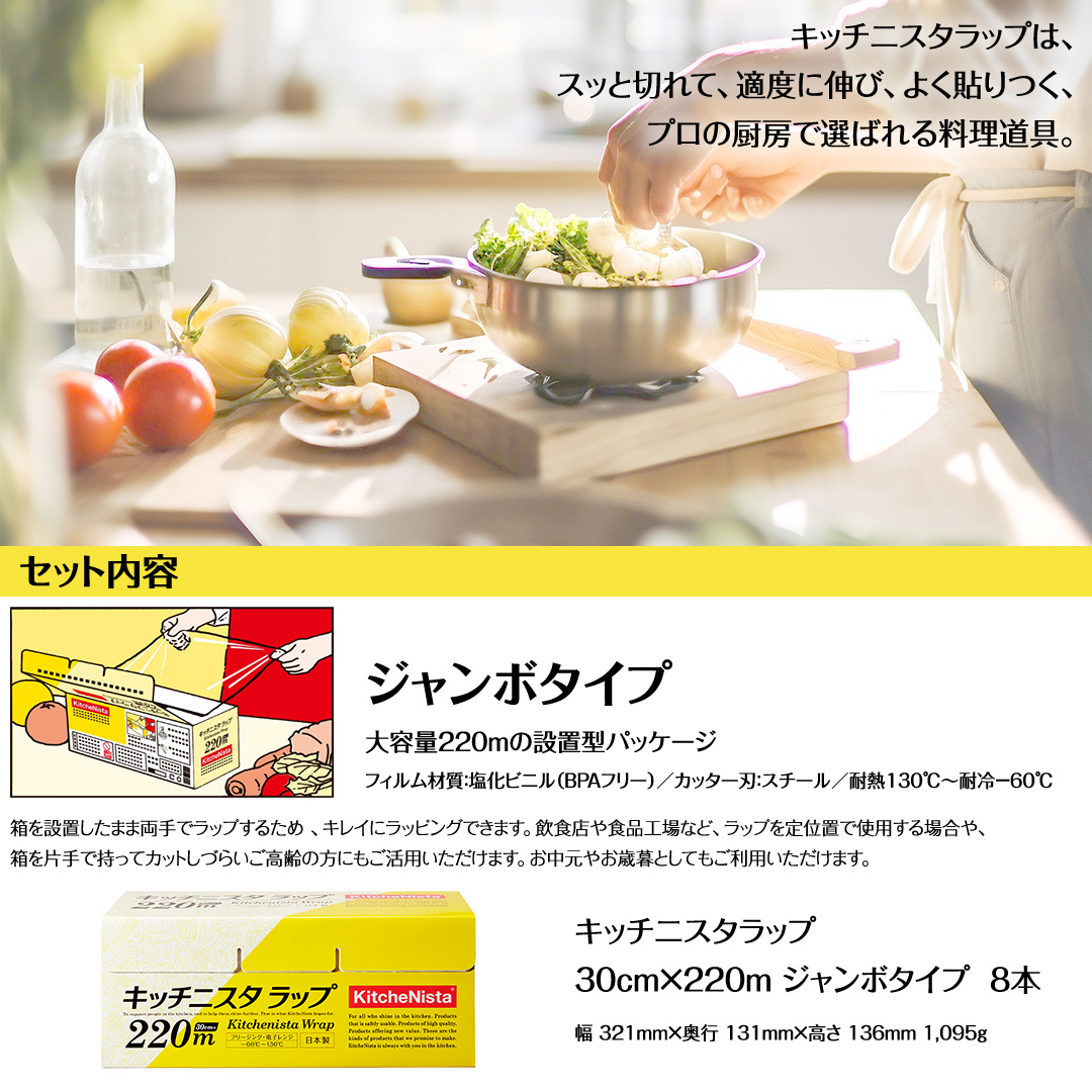 ご贈答品 としてもお使いいただける キッチニスタラップ ジャンボタイプ ( 8本入り ) ラップ ジャンボ 食品ラップ キッチン 台所用品 日用品 ギフト 贈答 大容量 キッチニスタ [DO004ci]
