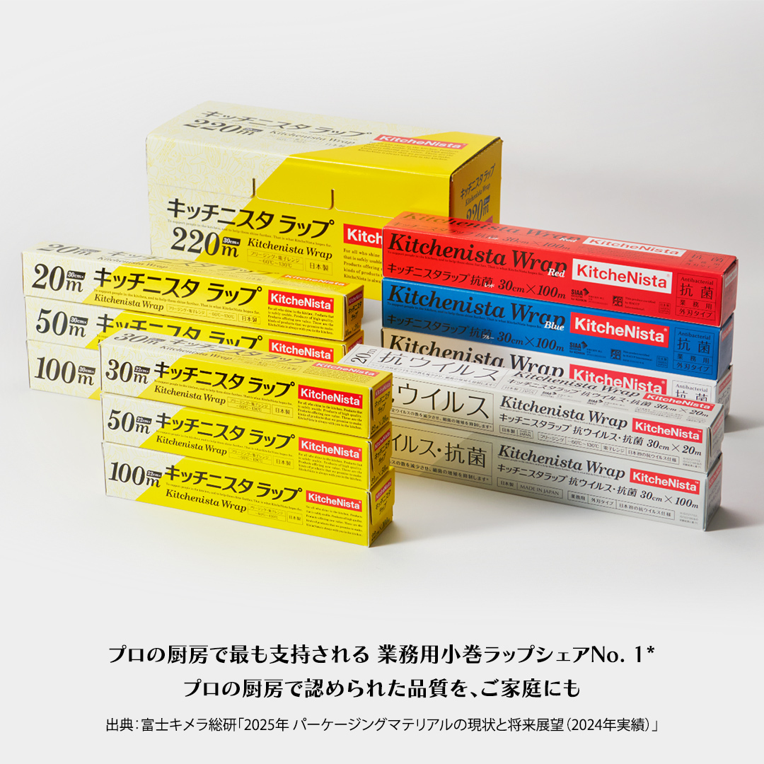 ラップを専用の「キッチニスタ ラップケース」へ詰替えて繰り返し使用できるため、化粧箱の廃棄が不要。