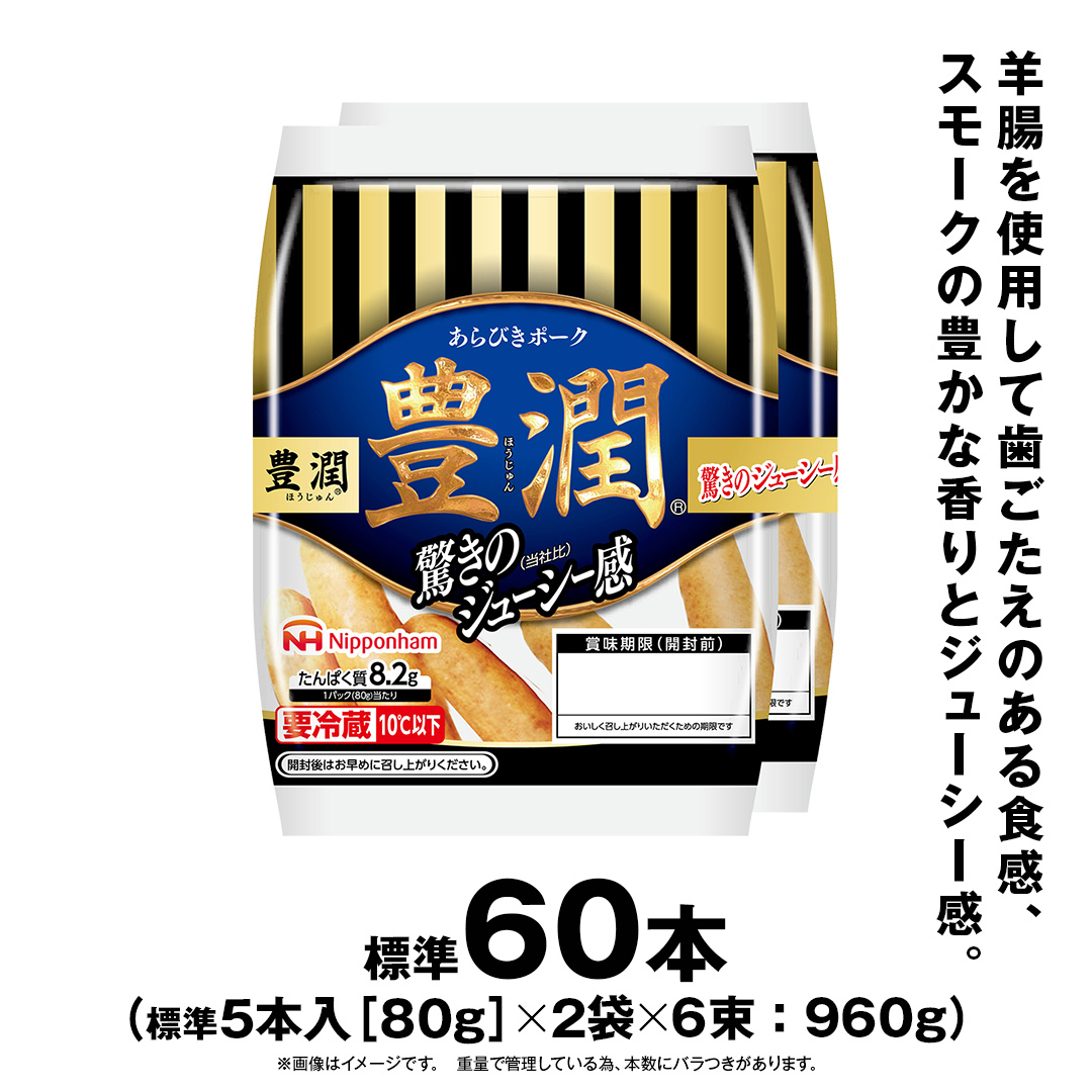 日本ハム 豊潤 6束セット ( 80g × 2袋 ) あらびき ポーク ウインナー 日ハム ソーセージ 肉 お肉 豚肉 にく 小分け [AA099ci]